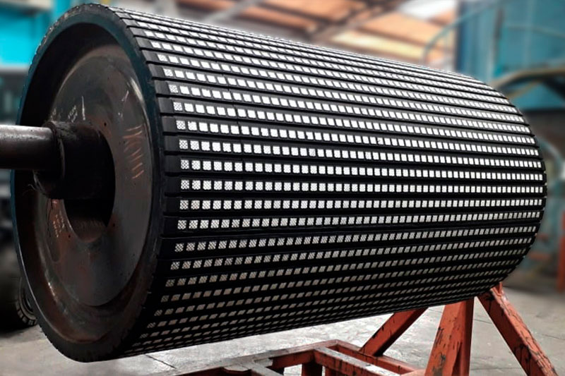 Ofrecemos la posibilidad de abastecer revestimientos de poleas y también el servicio (mano de obra calificada) en campo y taller utilizando caucho ranurado y cauchos con insertos cerámicos.